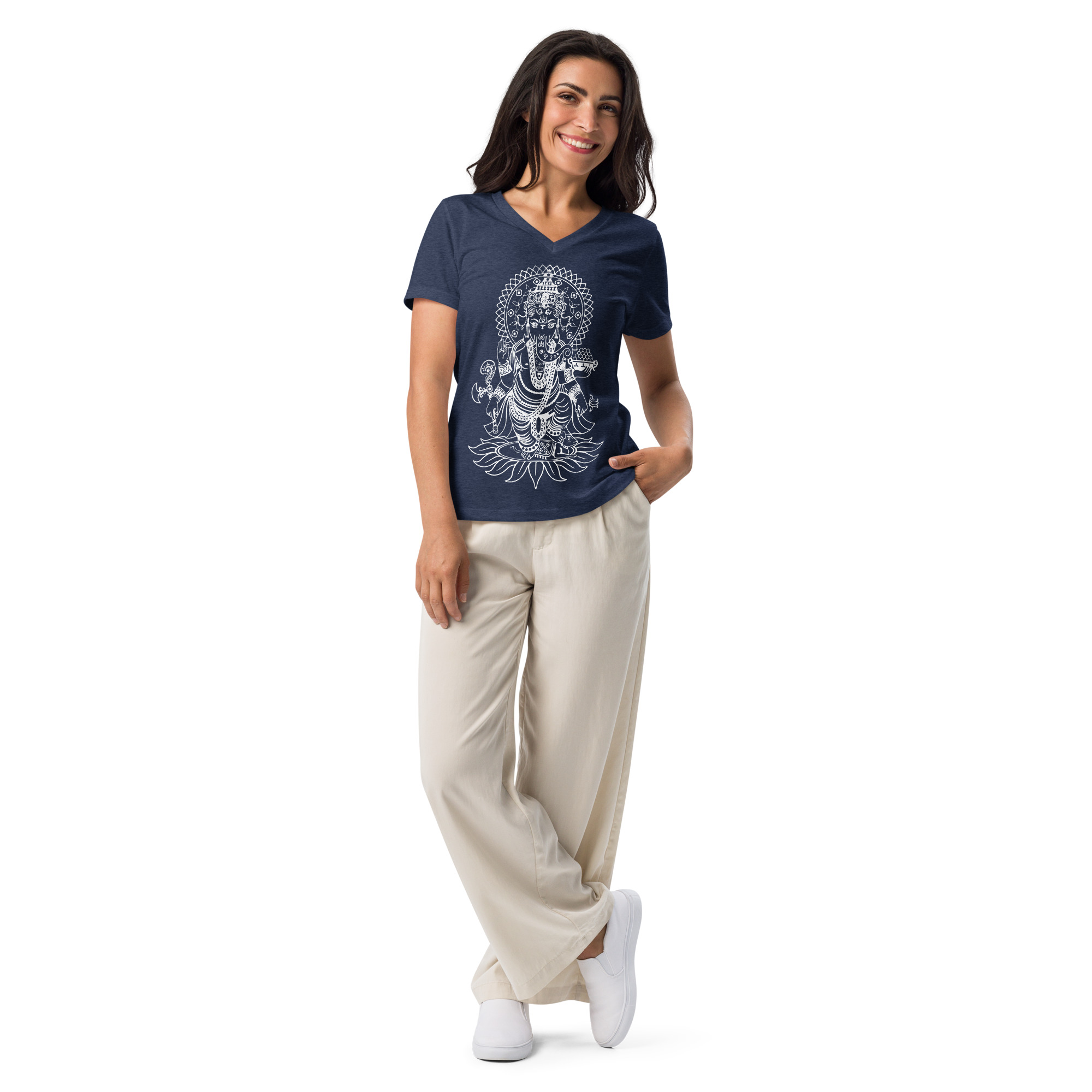 Ganesh- White Print- Women’s relaxed v-neck t-shirt