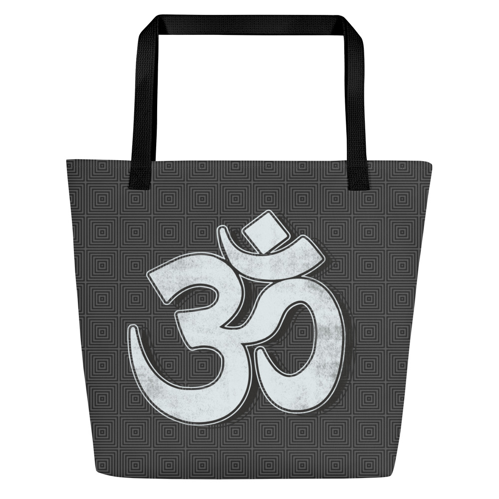 OM- White Print- All-Over Print Large Tote Bag